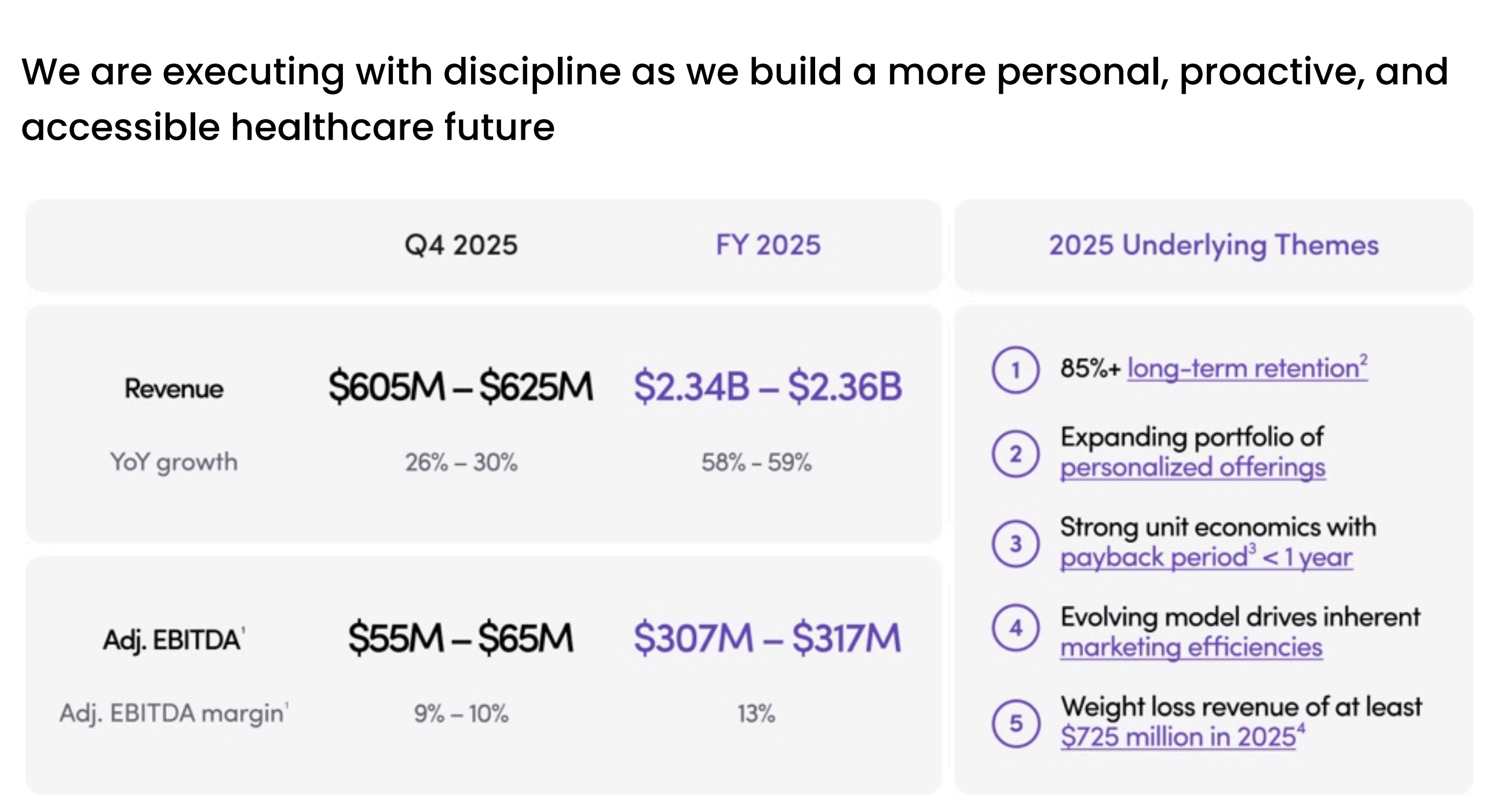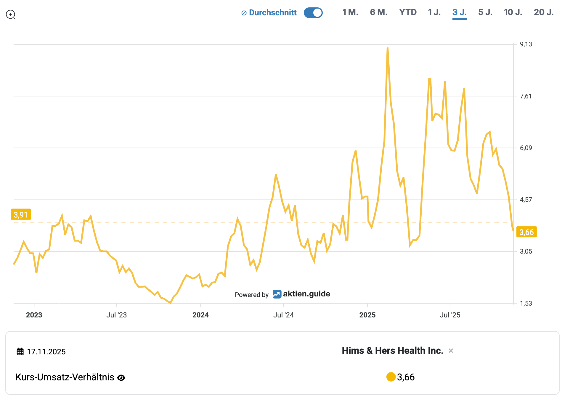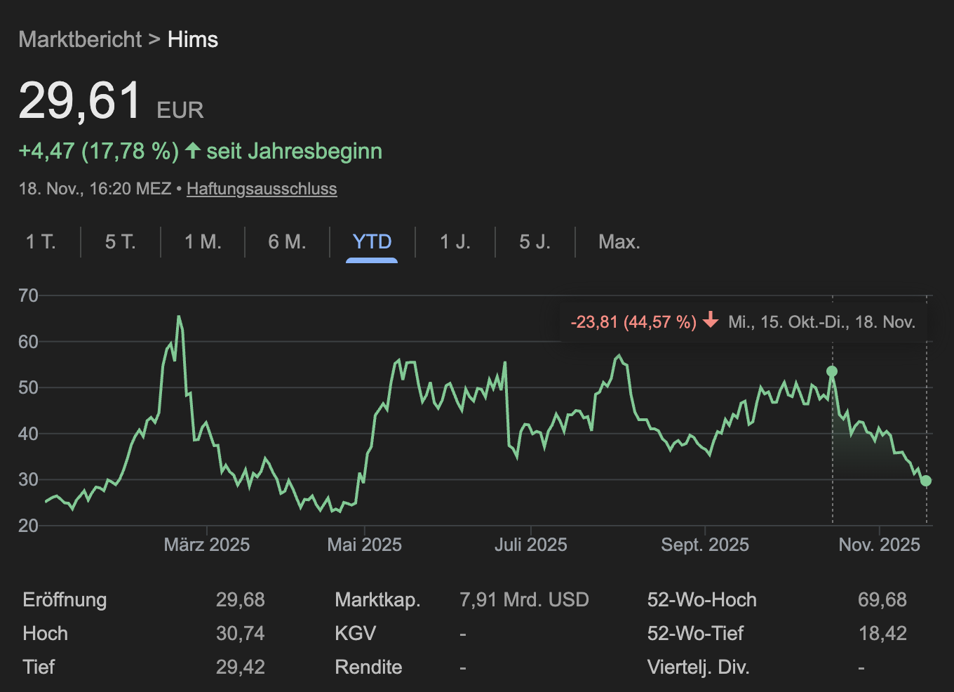 Weil das Umsatzwachstum im Q4-2025, wie beschrieben, nur noch bei 26–30% liegen soll. Und das nach 49% Wachstum im Q3. Einige befürchten deshalb, dass die Wachstumsstory bei Hims an Tempo verliert.
