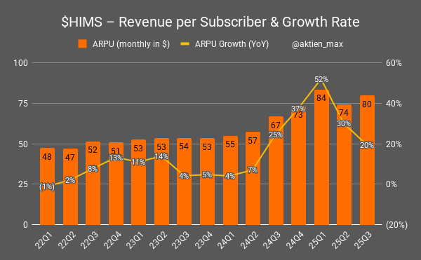 Für mich klingt das plausibel: Hims optimiert nicht auf den Umsatz pro Kunde in einem Jahr sondern über die gesamte Kundenbeziehung: also den Lifetime-Value (LTV). Wenn Hims sich durch Änderungen an ihrem Angebot von Kunden mit niedrigem LTV trennt, dadurch aber neue Kunden mit hohen LTVs anzieht, ist das die richtige Entscheidung. Auch wenn das Wachstum dafür kurzfristig zurückgeht.